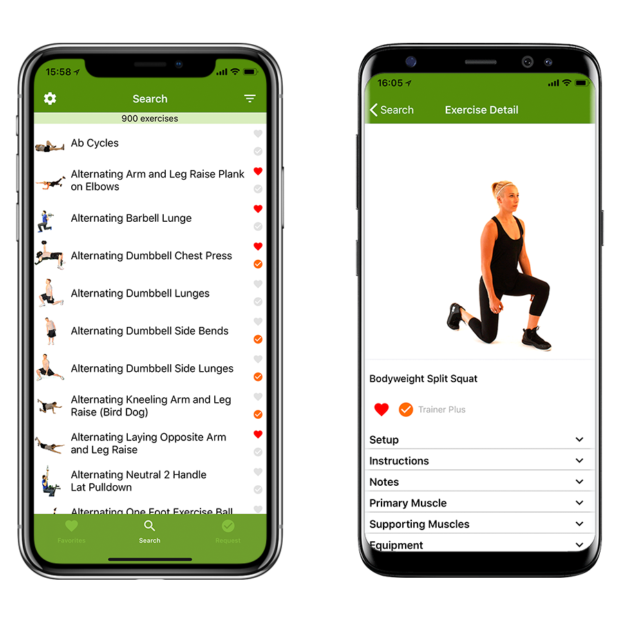 Every exercise includes live animation, picture, written instructions and search tags.